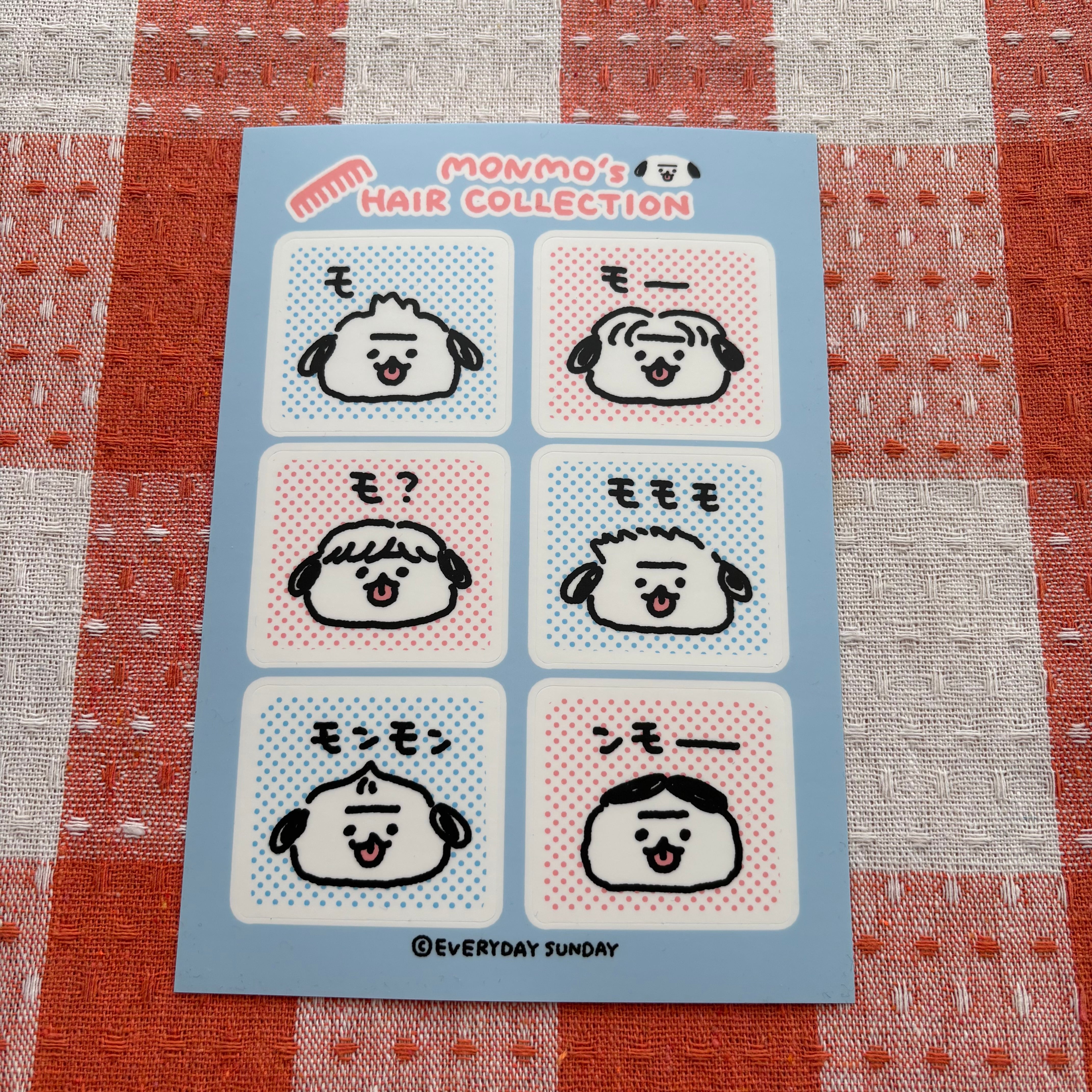 モンモのヘアーコレクション! 1シートに6枚分のステッカーです。 B6サイズ